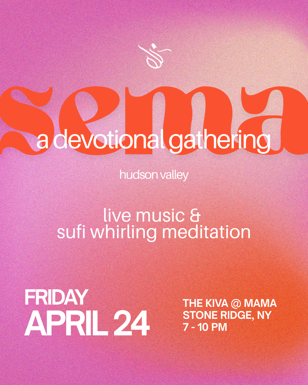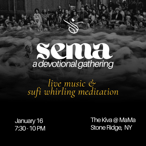 Sema (Arabic: سَمَاع) means “deep listening” and is a gathering rooted in the Sufi tradition that combines devotional chanting, live music, poetry and whirling meditation.
